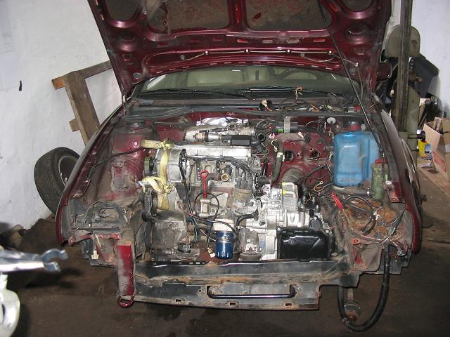 Da die Grundlagen für den Einbau des Getriebes existierten und der Motor Dank neuer Zwangsbeatmung wieder lief ging es an den Zusammenbau des Corrados.